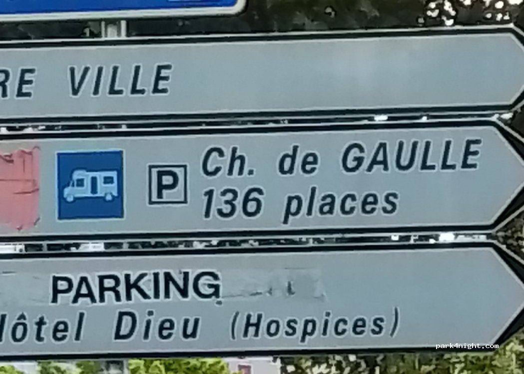 Con una piacevole passeggiata di 5 minuti si arriva all’Hospice de Dieu. Tranquillo rispetto alla strada, i posti sono di dimensioni auto, credo quindi che quelli reali siano meno. I posti lunghi 8 m sono una ventina In questi giorni non è possibile pagare ingresso per un guasto alla macchinetta. Corrente disponibile.