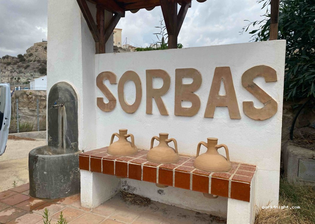 Ho caricato il serbatoio delle acque chiare con l’acqua della fontana collegando il rubinetto e la canna con un adattatore in gomma, perché quello classico in plastica dura non può essere usato. Grazie al comune di Sorbas per questa disponibilità gratuita