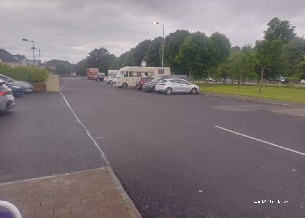 Super Parkplatz um Galway zu besuchen und sich den Stress mit dem Camper in der Innenstadt zu sparen. Direkt an der Bushaltestelle, mit dem Bus für 1,90€/Person im 15 Minutentakt ins Stadtzentrum. Genug Platz auch für 7,5m Wohnmobile. Denke über Nacht auch kein Problem, jedoch sollte man nicht zu viele Nächte bleiben. Ein Wohnwagen und ein Anhänger hatten Parkkrallen. Top: Kl. Supermarkt nebenan