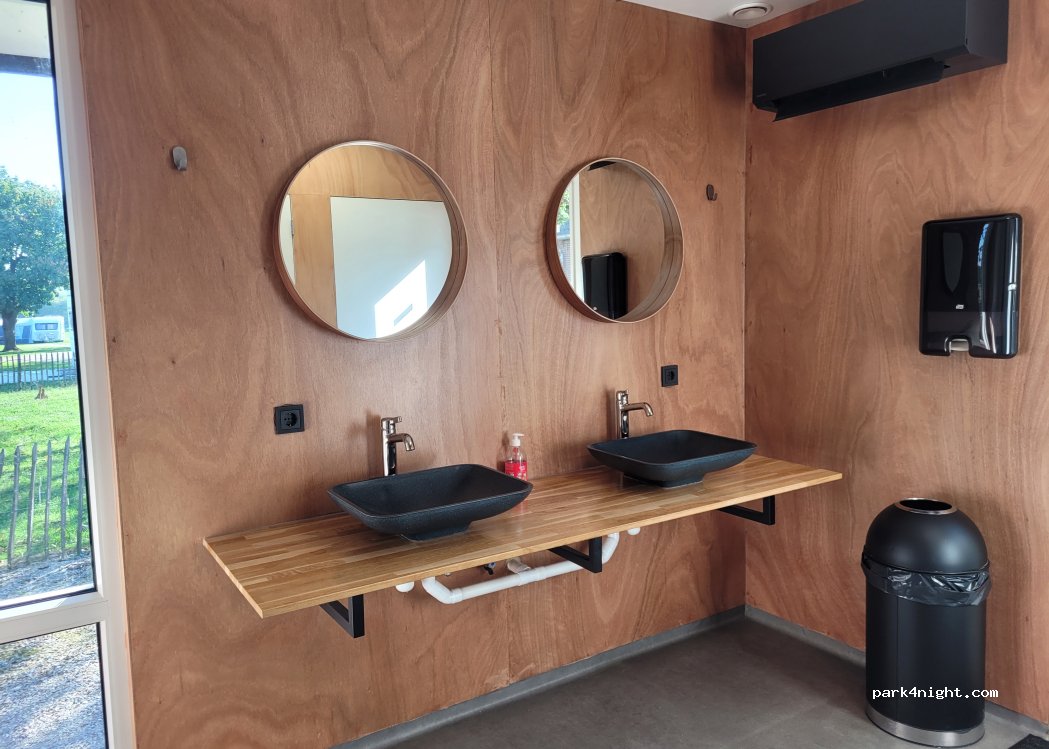 Le petit camping (22 emplacements) est situé juste en face de la digue entre la Meuse et un petit lac. Le site est très bien entretenu et dispose d'un petit lavoir avec toilettes, lavabos et douches. Il y a aussi un réfrigérateur librement accessible qui peut être utilisé par exemple par les cyclistes. Le couple qui le gère est très sympathique.
