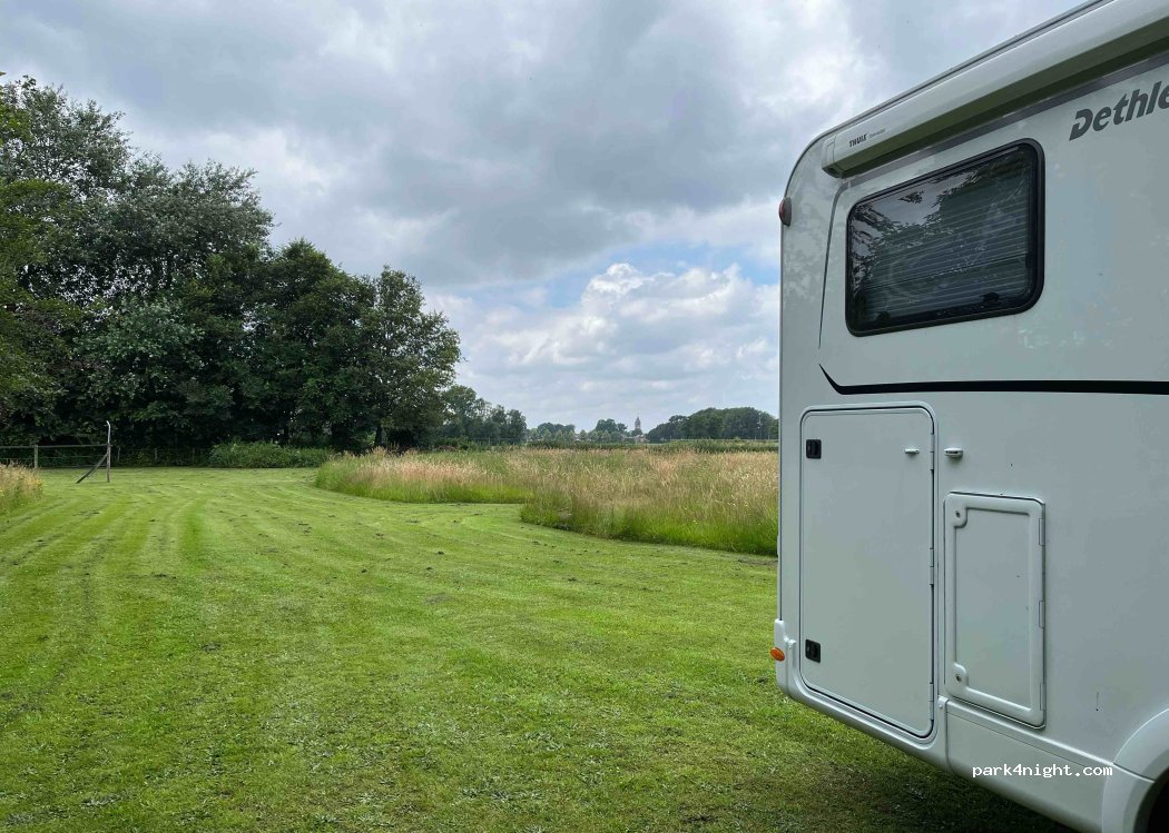Wij hebben een heerlijke vrije plek midden in het groen. Met mooi uitzicht over het land en in de avond kun je genieten van de zonsondergang. Deze plek bied heel veel vrijheid. Neem voor aankomst wel telefonisch contact op zodat wij de poort voor u kunnen openen.