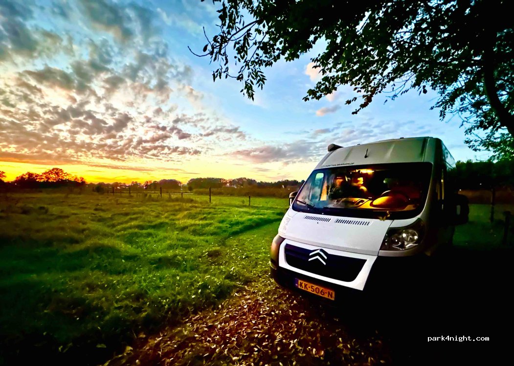 Wir haben einen schönen freien Platz mitten im Grünen. Mit einer wunderschönen Aussicht über das Land und abends können Sie den Sonnenuntergang genießen. Dieser Ort bietet viel Freiheit. Bitte kontaktieren Sie uns vor Ihrer Ankunft telefonisch, damit wir Ihnen das Tor öffnen können.