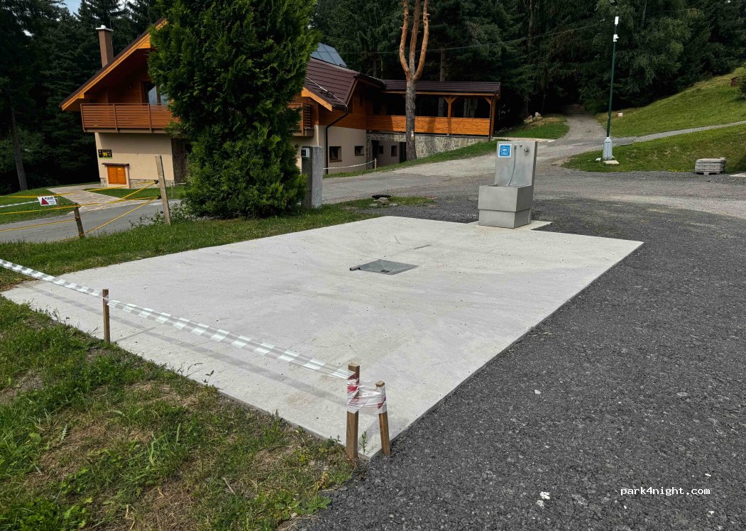 One of the few options for legal parking in Demäňovská dolina. The whole area is very built-up and many parking lots are not allowed to park motorhomes even during the day. The meadow is spacious, the possibility to add water and pour black water. Gray water is more problematic. There are showers and toilets. Beautiful views. We paid around 17 € / night (motorhome, two adults, one child).