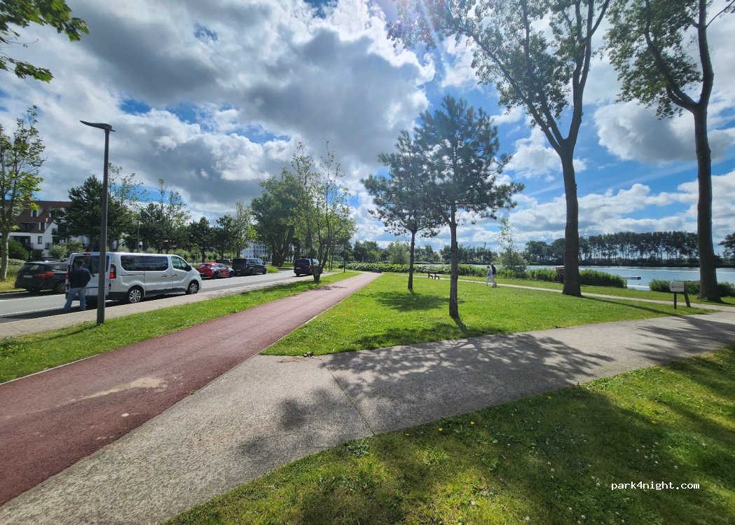 Parked overnight with a lovely view of the lake and used the toilet in the sports centre (opening at 8am). But was moved on politely by a police bike around 10am, who says no overnighting within the city limits.