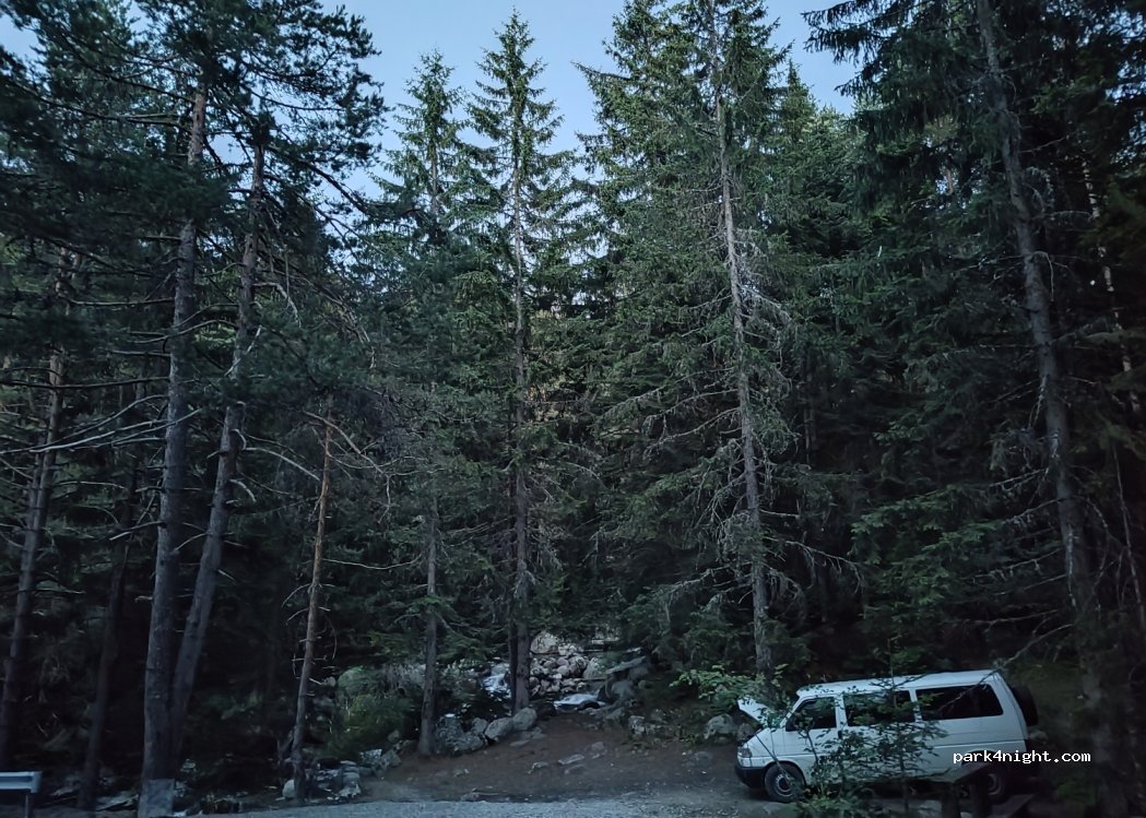 Là, nous avons trouvé cet endroit pour passer une nuit ici. A côté se trouve cette magnifique crique de montagne. Il y a aussi un banc où vous pourrez prendre votre repas ou votre petit-déjeuner le matin. L'entrée n'est pas tout à fait adaptée pour un camping-car ou un camping-car, mais (presque) parfaite pour notre 4x4 syncro VW Transporter T4.
