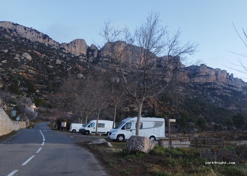 Aan de weg (Camí de la Devesa) naar het dorpje erboven zijn ook meerdere ruime plaatsen. Hier heb ik zelf 3 rustige nachten gestaan. Hier stonden ook meerdere busjes van andere klimmers. De wandeling naar het verlaten klooster is een aanrader!