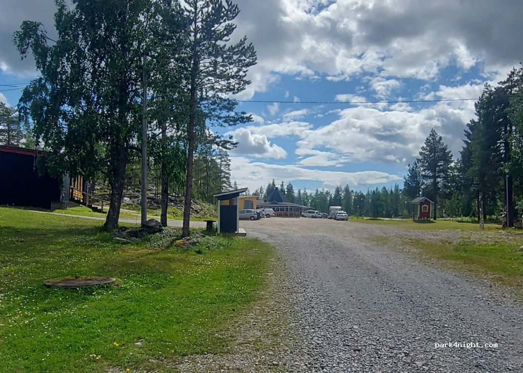 Im Winter kann man hier für 10 Euro stehen. Ohne weitere Einrichtungen. Strom würde 10 Euro extra kosten. Im Winter nicht die Kota am Rentiergehege nehmen. Bekommt zu wenig Luft und qualmt. Schlittenhügel rauf, Skilift nach rechts queren. 100m weiter steht eine bessere.