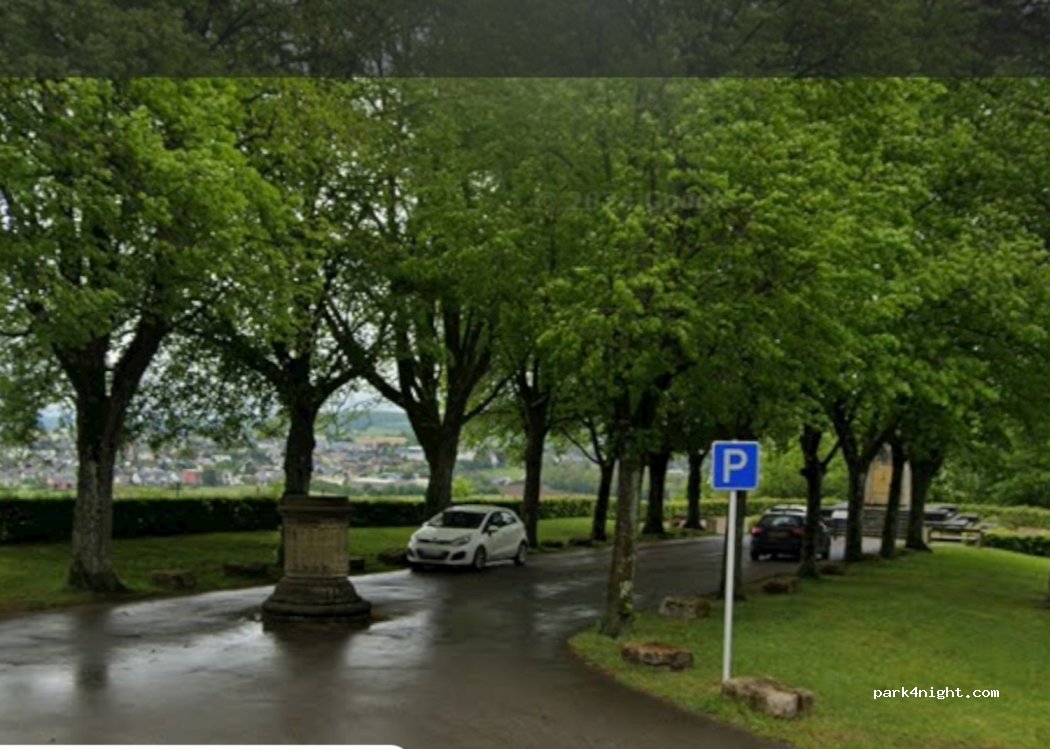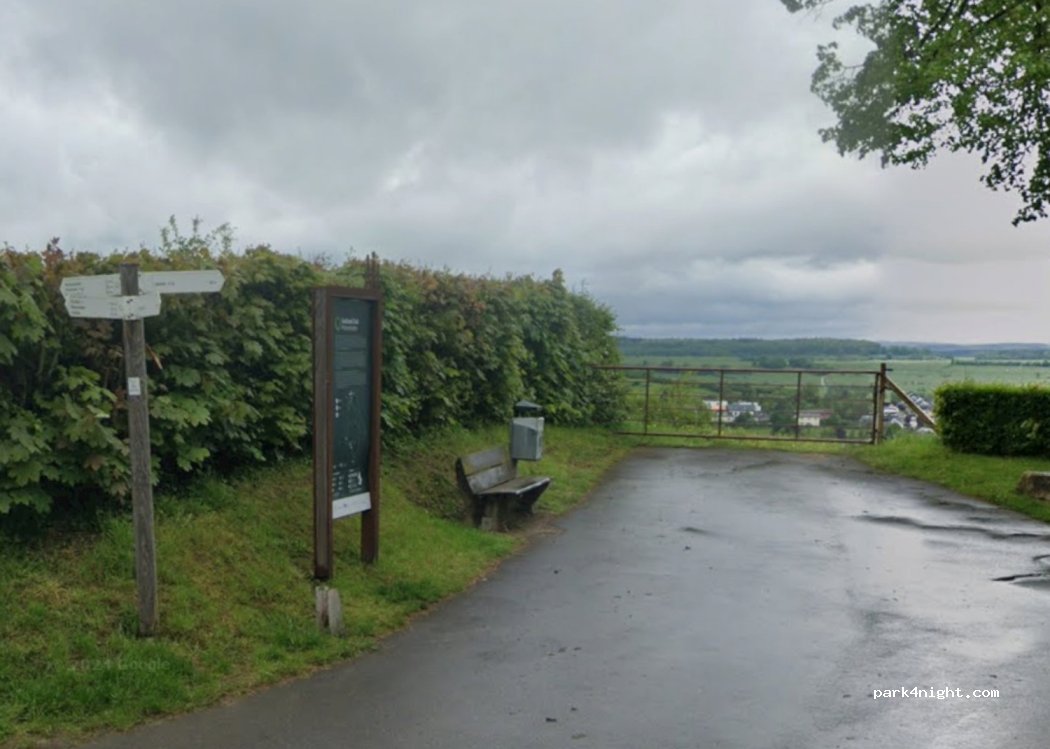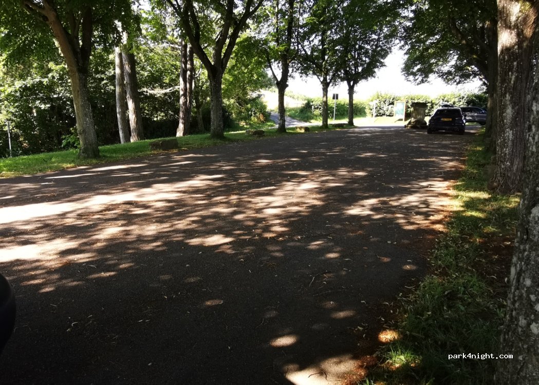 Au bout d'une voie sans issue. Un petit stationnement asphalté avec une certaine pente. Belle vue. Un peu bruyant avec les bruits de la ville en fond, mais pas gênant pour dormir. La 4G fonctionne bien ici. Point de départ d'une belle balade de 7,6 KM