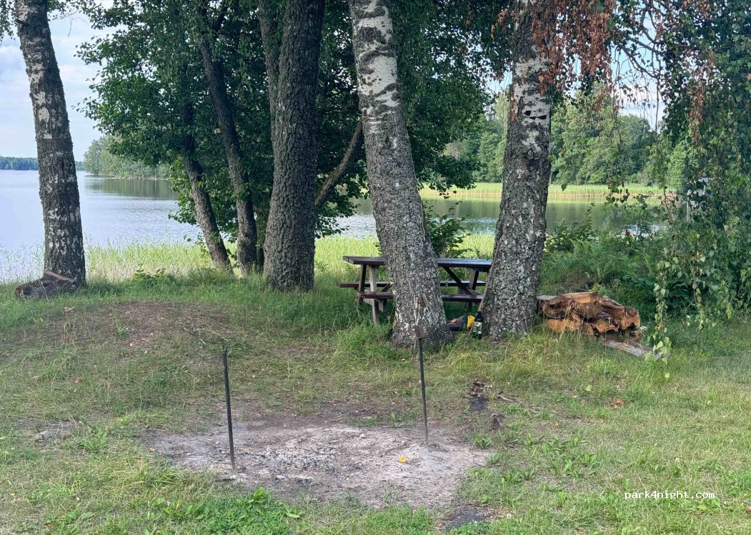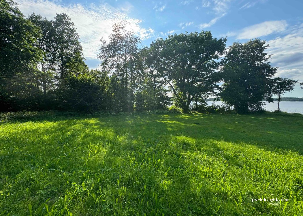 Am Seeufer gelegener, sehr schöner privater Campingplatz mit Stellplatz für Wohnmobile, Feuerstelle, Grill. Badezimmer mit Duschen und Küche vorhanden. Ungefähr 4-5 kleinere Wohnmobilstellplätze. Wir reisen mit Dachzelt.