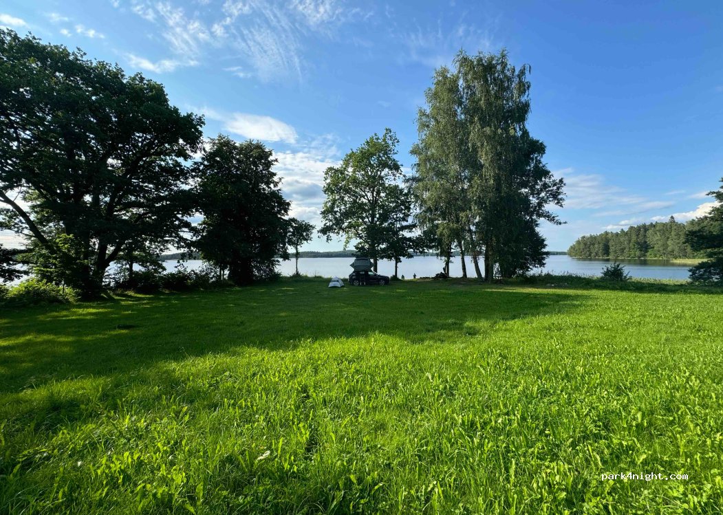 Located on lake shore, very nice private camping ground with a space for campers, firepit, bbq. Bathrooms with showers and kitchen provided. Approximately 4-5 smaller camper spaces. We travel with rooftop tent.