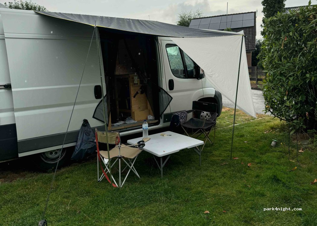 Emplacement pour van et camping car de niveau, endroit chaleureux, tranquille, le robinet d’eau est dans le poulailler des Little chicken. Les prises électriques sont en 220v et non prise camping , personne accueillant et sympathique