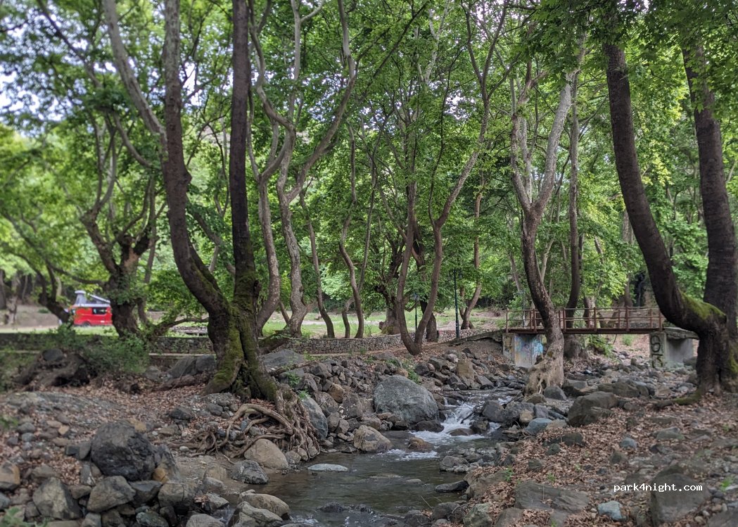 Very quiet place by a small river with a lot of old sycamora trees and picnic tables. There is a spring, little lake, waterfalls, stone pavements and bridges. A picnic place for locals. Place for several cars. Only very one mosquito during the night. Almost clean. Good sleep on the way.