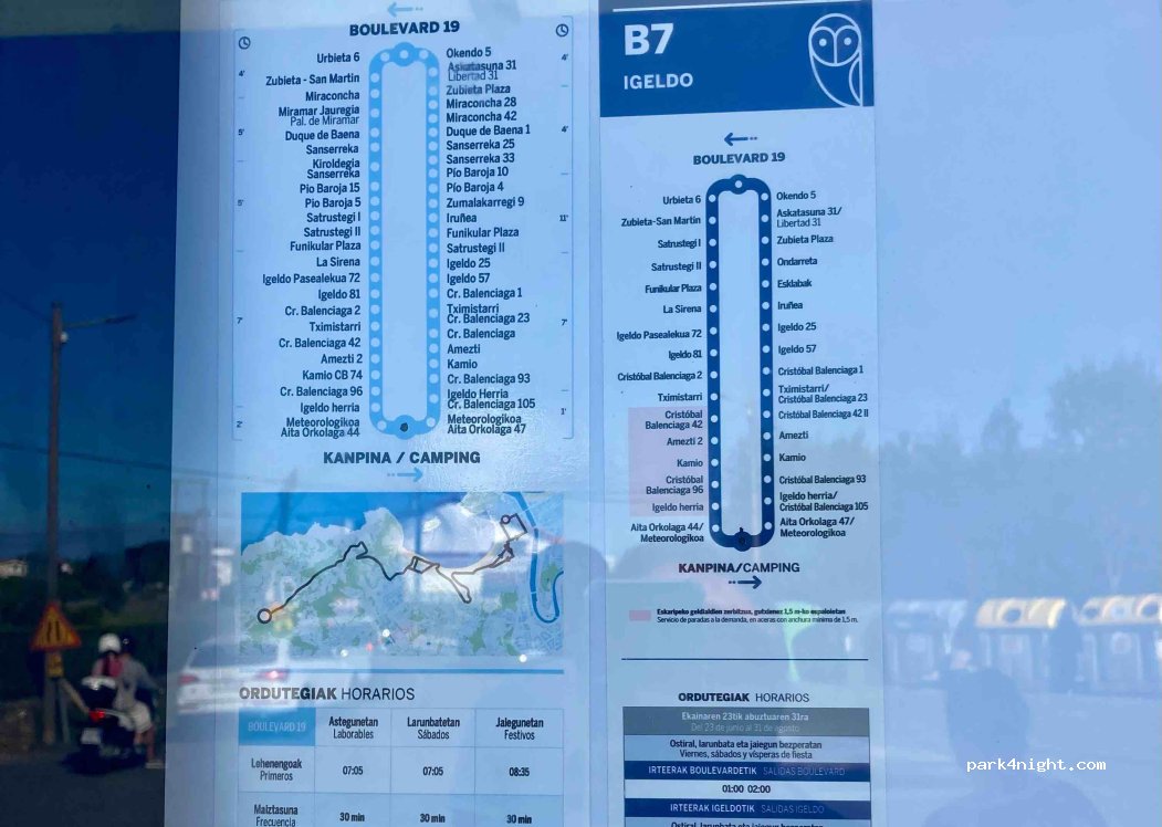 Zeker niet de goedkoopste plek in de buurt van San Sebastián. Wel een camperplek gerund door een camping waarbij je ook alle mogelijke faciliteiten hebt. (Proper sanitair, douches, winkeltje, zwembad, restaurant) Bushalte op 200m (€1,85 / rit naar SB). Vraag aan de balie achter ticketjes voor de bus (€9/ 6 ritten) Wij konden 1 dag op voorhand zonder probleem reserveren.