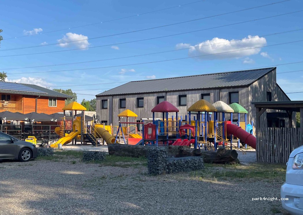8 plaatsen op de kiezels rustig gelegen met zicht op bos. 16A elektriciteit per plaats. 1 kraantje voor allemaal zonder afvoer. Op de parking vooraan zijn er nog 3 verharde plaatsen en 1 in het gras. De wc’s van het restaurant kunnen enkel tijdens de openingstijden gebruikt worden. Er staat aan de ingang van het restaurant een vuilbak voor klein afval. Overkant straat is een ingang naar het bos.