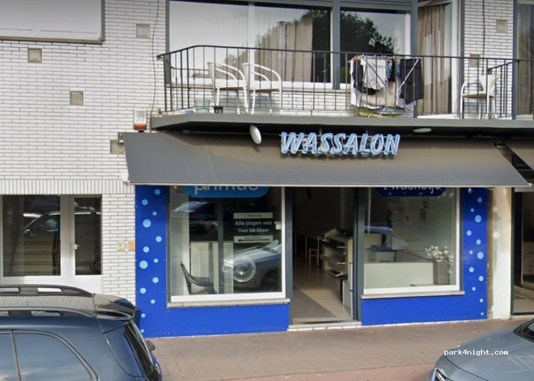Wasserette met veel wasmachines en drogers. Parkeren kan voor de deur langs de straat.