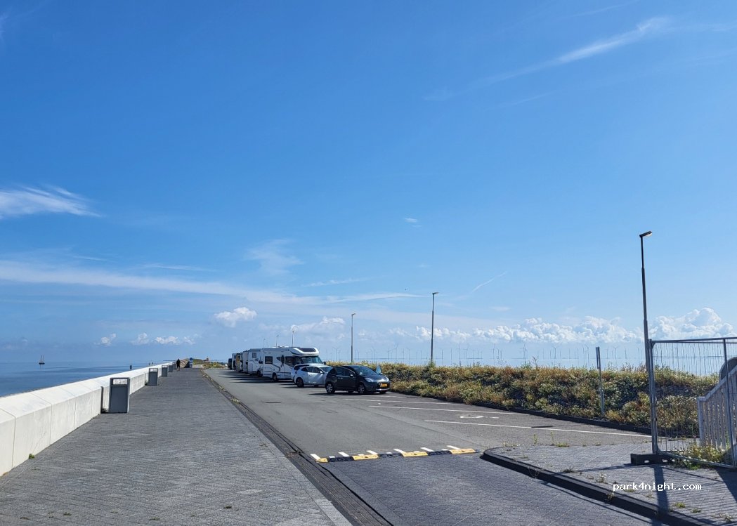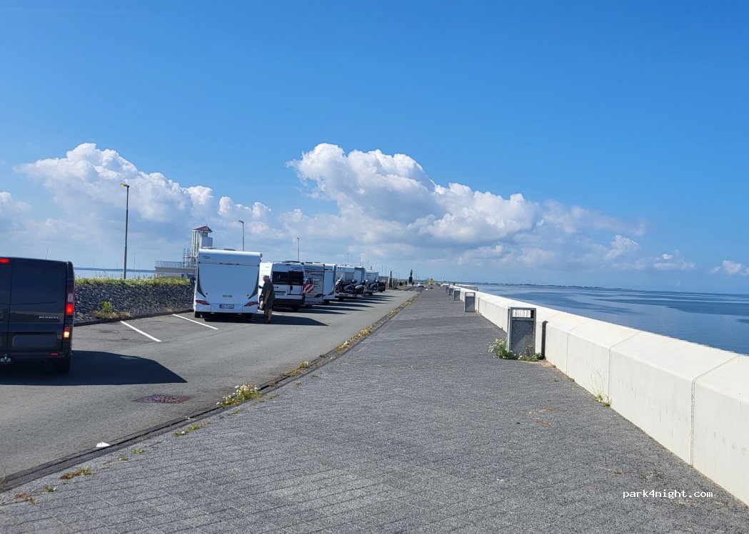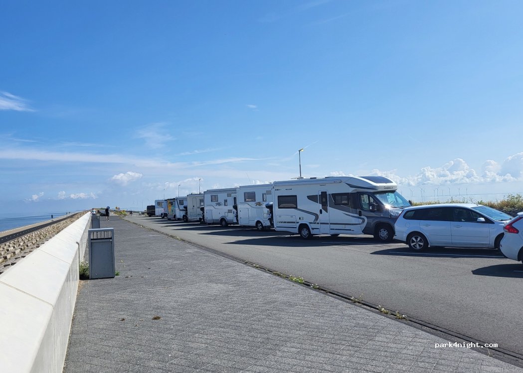 Ci siamo fermati qui per pranzare. Il nostro mezzo da 7.5 m deve posizionarsi in orizzontale, occupando più spazi di parcheggio, ma direi senza problemi. Posto adatto solo per una breve sosta (ci sono cestini) perché c'è troppo vento e il camper oscilla tanto.