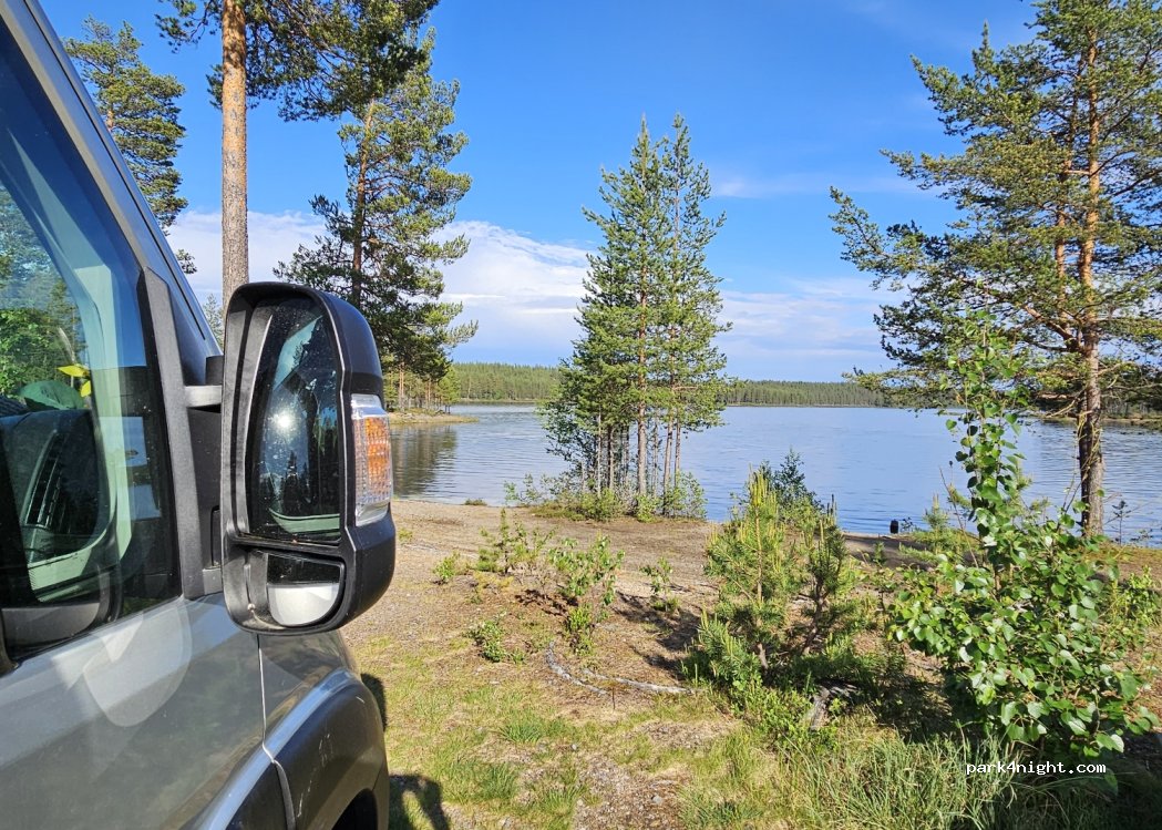 Ein wunderschöner Platz mit kleinen Parkbuchten unter Bäumen. Tische überall und auch Feuerholz. Der Fluss wird schnell tief, ist also nicht für kleine Kinder geeignet. Nur Schotter, kein Sand. Die Mücken waren zahlreich. Die Straße ist tagsüber Recht laut, aber nachts ist es ruhig. Im Plumpsklohaus war ein Wespennest. 60 SEK sind ok, aber solche Plätze gibt es in der Nähe auch kostenlos.