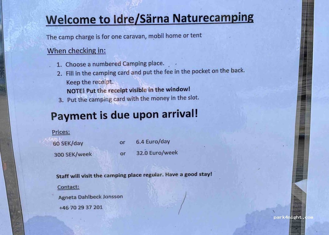 Perfect for a night's stay, a very scenic and peaceful place, for just 60 SEK/night. 8 numbered spots, payment by cash or swish