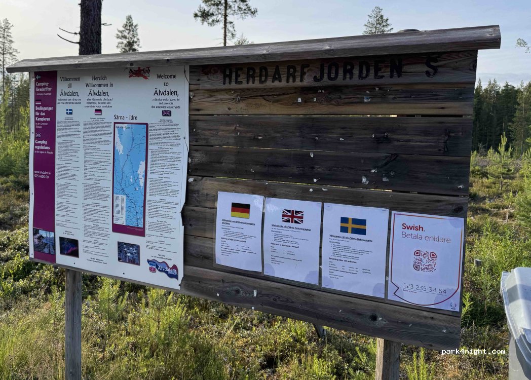 Schöne Lage am Fluss. Wirkt ein bisschen wie in einem kleinen kanadischen Provincial Park. Die Geräusche der Straße stören das etwas. Nachts ist die aber ruhig. Bezahlung nur mit Bargeld oder Swish. Vorsicht: Wespennest im Toilettenhäuschen