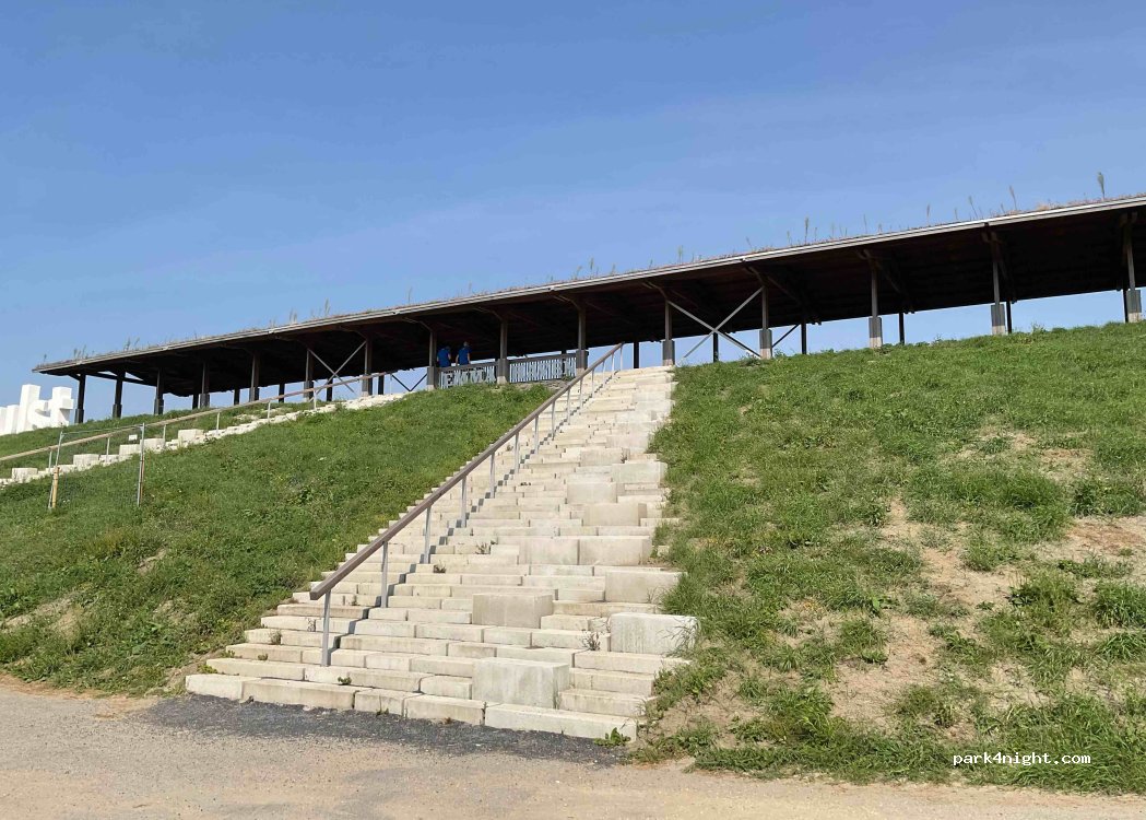 Via een trap kan je de dijk op en heb je een mooi uitzicht.
