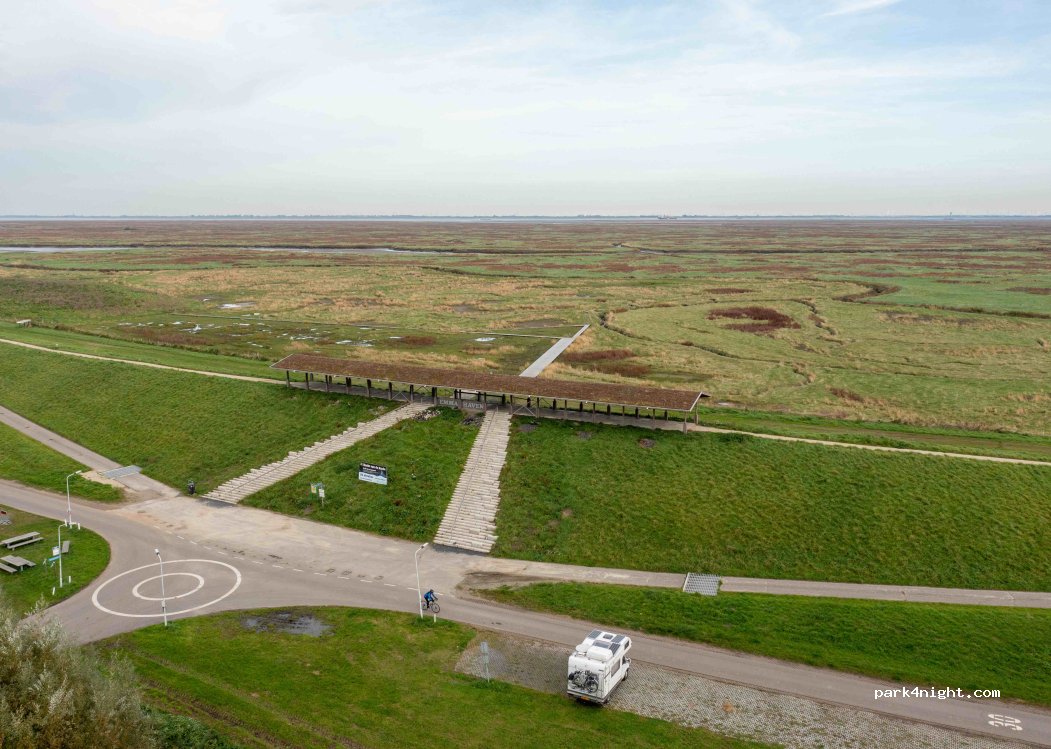 Zeer mooie gratis camperplaats. De officiële plekken zijn tussen de borden met pijl. Dan is er ruimte voor 4 camper. De rest zijn gewone parkeerplaatsen. Mooi wandelgebied net over de dijk. Dit soort plekken zouden er meer in Nederland moeten zijn.