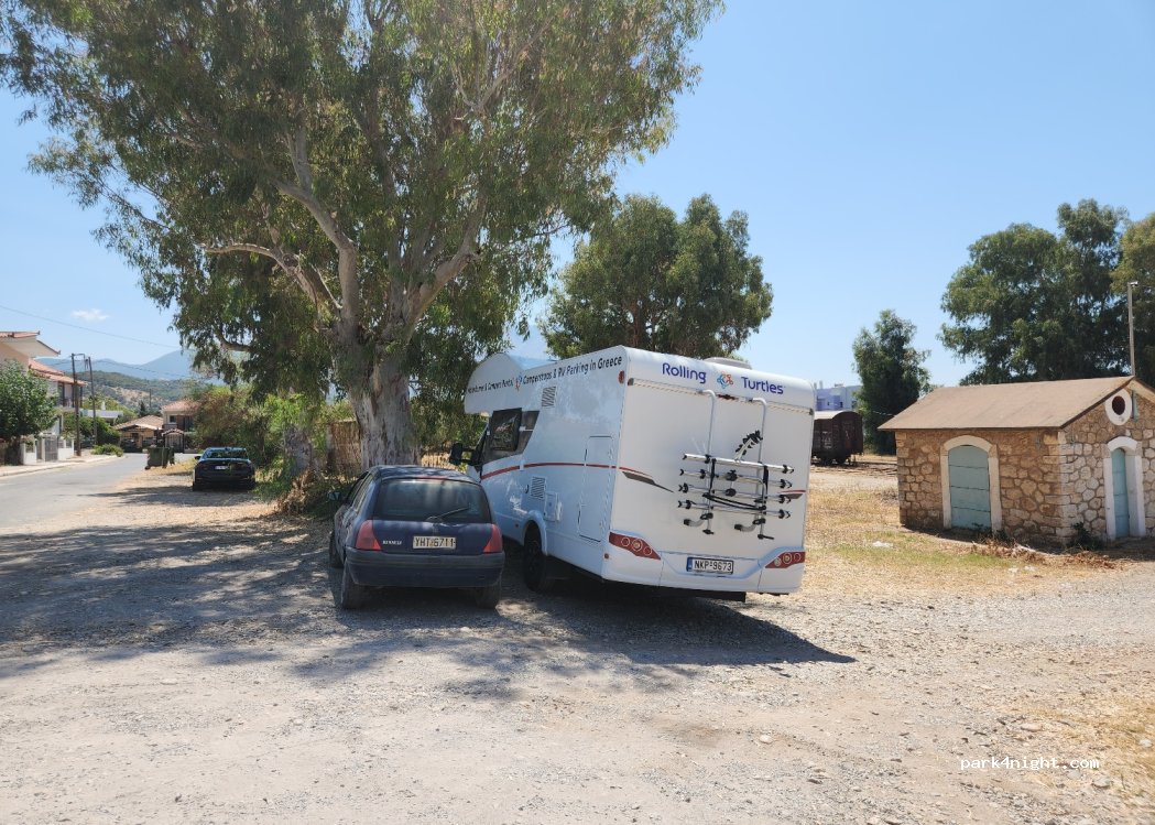 Passa la polizia e i greci di arrabbiano perché i camper parcheggiano sotto gli alberi. È i ristoratori ci domandano perché i camper non vanno più li
