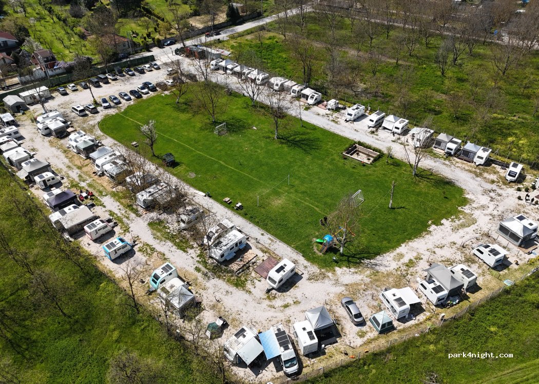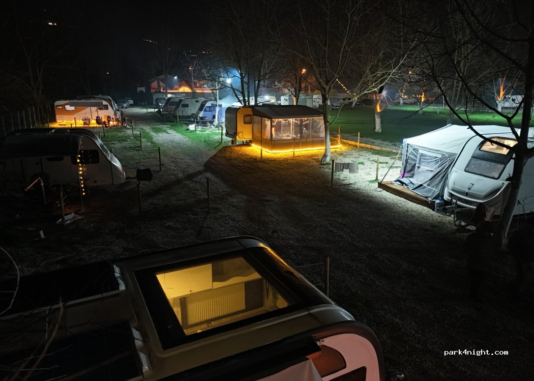 The campsite consists of plots arranged in a U shape around a large grass area. Each plot has electricity, water and grey water drainage. There is hot water in the kitchen and sinks 24 hours a day. The WC and shower are at the level of luxury hotels. The camp attendant, Mr. Emre, is very caring and friendly. The only negative aspect is that the campsite is relatively close to the TEM highway.