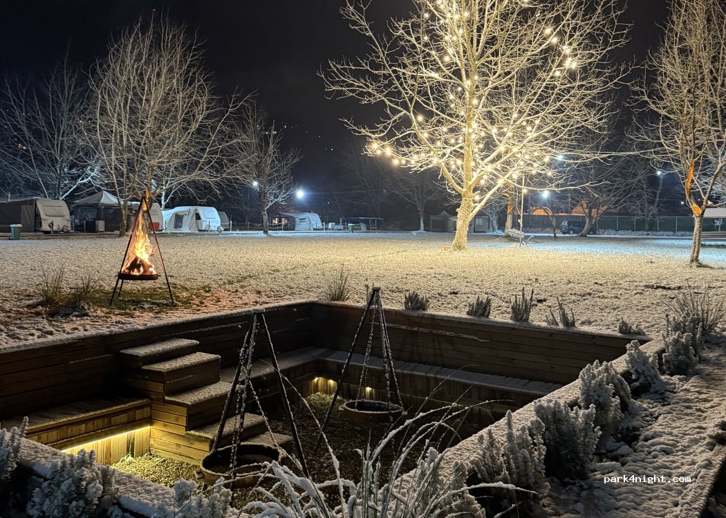 The manager is friendly, and each motorhome parking space is equipped with water, electricity, and sewage disposal facilities, making it very convenient. There's no need to worry about car’s noise in a caravan motorhome, not a tent. The facilities are clean. For 30 euros per night, we received electricity, a 9kg washer, and an 8kg dryer, free of charge during the off-season.