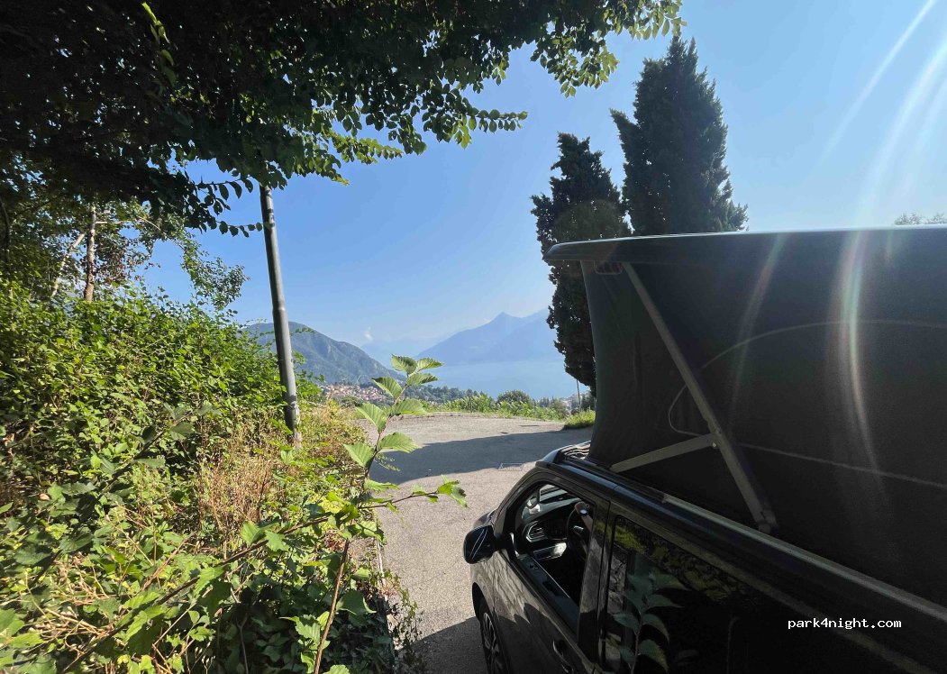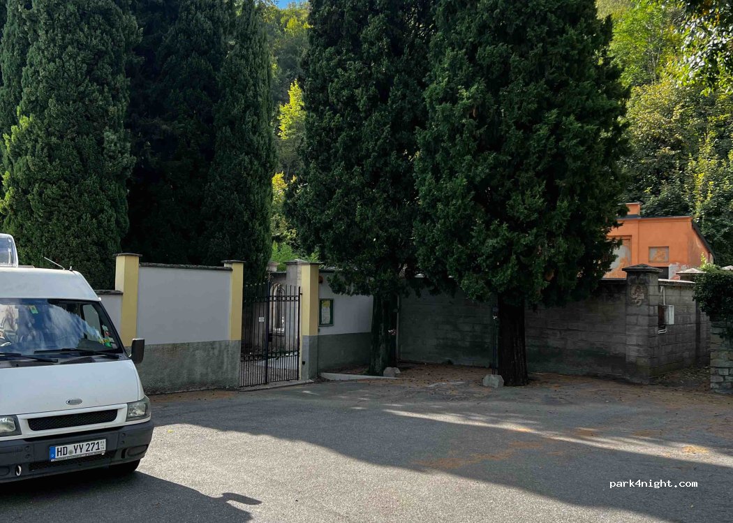 Piccolo parcheggio del cimitero con vista sul lago! Situato alla fine di un vicolo cieco (largo 2 m, quindi ok in un furgone). Spazio tranquillo