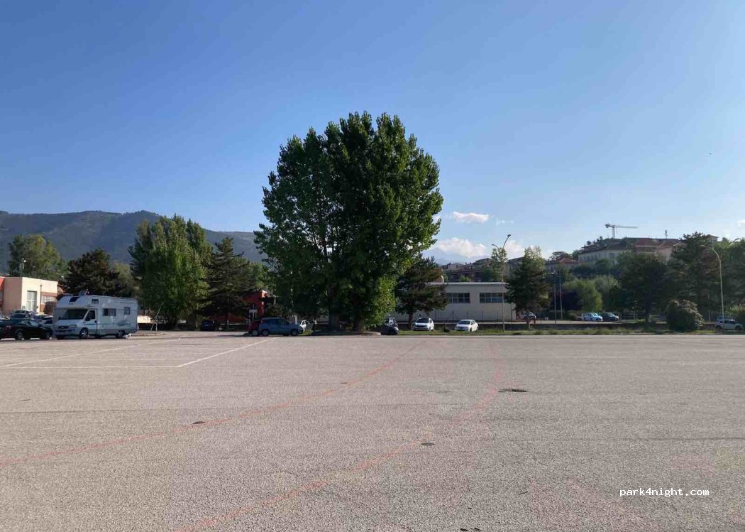Parcheggio adiacente al Tecnopolo D’Abruzzo dove si trovano diverse aziende. Non molto distante da un Eurospin, dalla stazione dei treni e dalle fermate dell’autobus, ma per il resto lontano da tutto. In compenso è molto tranquillo e silenzioso e parzialmente illuminato. Giusto al mattino qualche automobile di lavoratori del Tecnopolo. Se si vuole fuggire dal caos delle aree sosta in eventi affollati come la Perdonanza o il Jazz per le terre del sisma è un posto che mi sento di consigliare.
