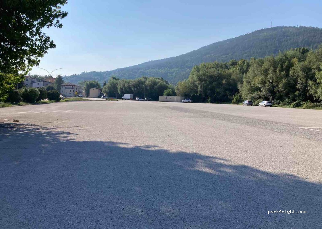 Parking adjacent au Tecnopolo D'Abruzzo où sont implantées plusieurs entreprises. Pas très loin d'un Eurospin, de la gare et des arrêts de bus, mais sinon loin de tout. Par contre, il est très calme et paisible et partiellement éclairé. Juste le matin, quelques voitures des ouvriers de Tecnopolo. Si vous souhaitez échapper au chaos des aires de repos lors d'événements très fréquentés comme la Perdonanza ou le Jazz pour les terres du tremblement de terre, c'est un endroit que je vous recommande.