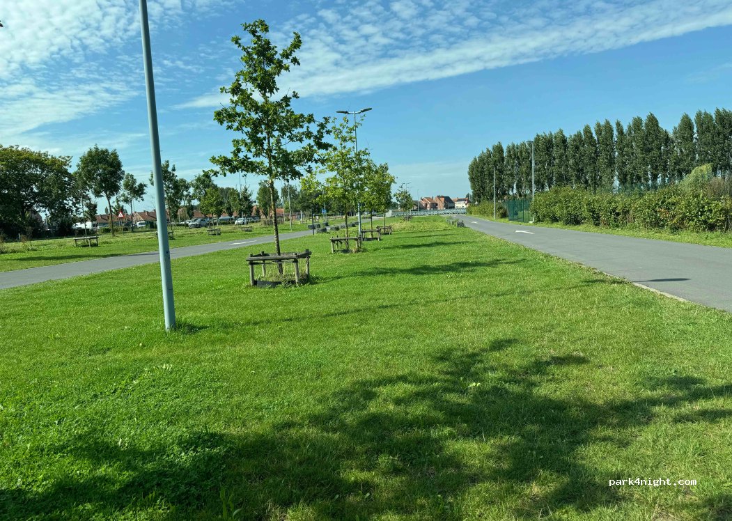 Parking nabij sportcentrum. Eerste plaatsen aan inrit parking zijn vlak, andere licht hellend. Startpunt van wandelingen en fietstochten. Overdag wat lawaai van verbindingsweg. ‘s Nachts heel rustig.