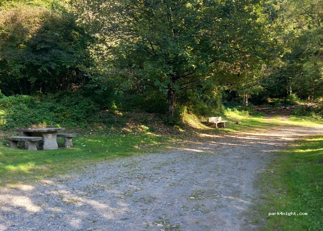 Picknickplatz mit Tischen am Beginn der Wanderwege. S