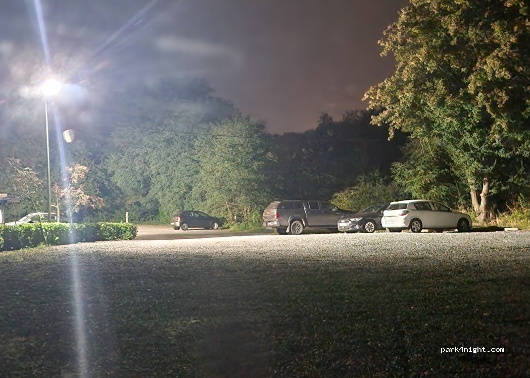 Wirklich sehr guter, ruhiger Schotterplatz in einer bewaldeten Umgebung, in einer Siedlung. Autobahn ist etwas zu hören, haben sehr gut geschlafen und uns sicher gefühlt. Gegenüber ist ein Café.