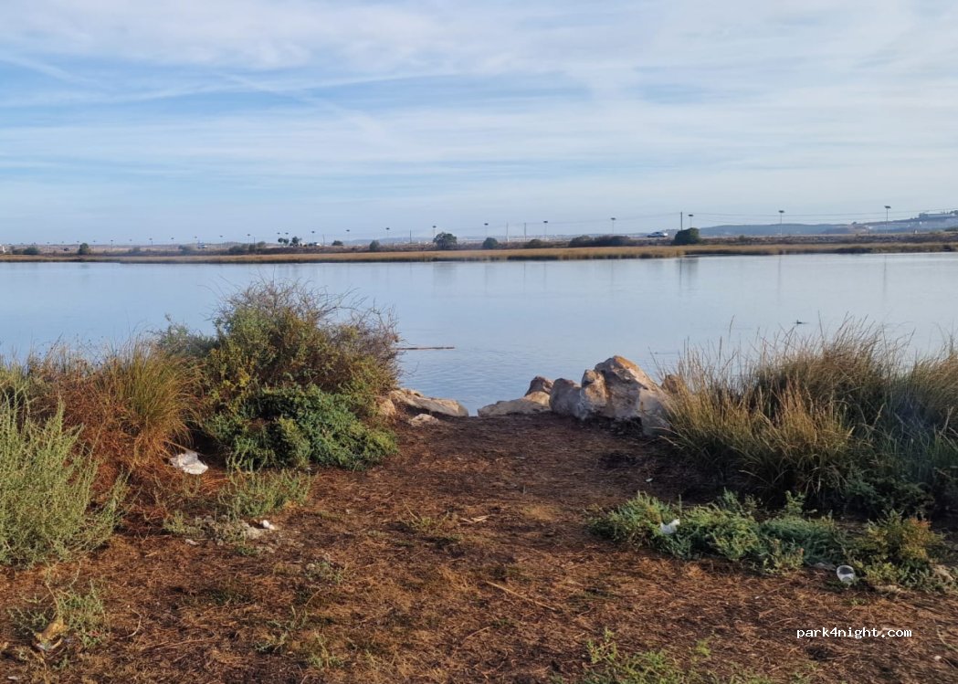 Prima, eenvoudige plek om te overnachten. Vlakke parkeerplaats met uitzicht op de flamingo's. Er is een vuilnisbak en je loopt zo het centrum in met horecagelegenheden een supermarkten Aldi en Lidl. Bij de Lidl is tevens een openbaar toilet en kun je gebruik maken van WiFi.