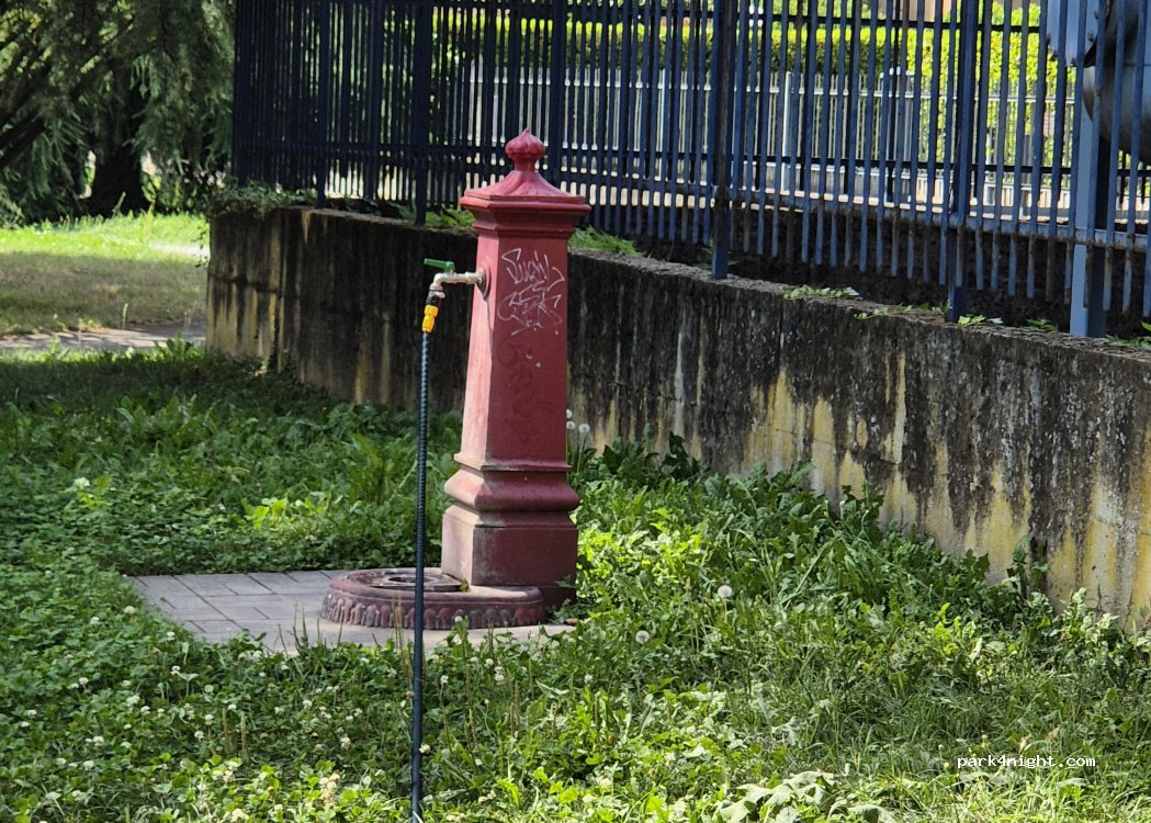 In un parchetto senza recinzioni e con la possibilità di parcheggiare non distante dalla fontanella. Ottimo carico acqua
