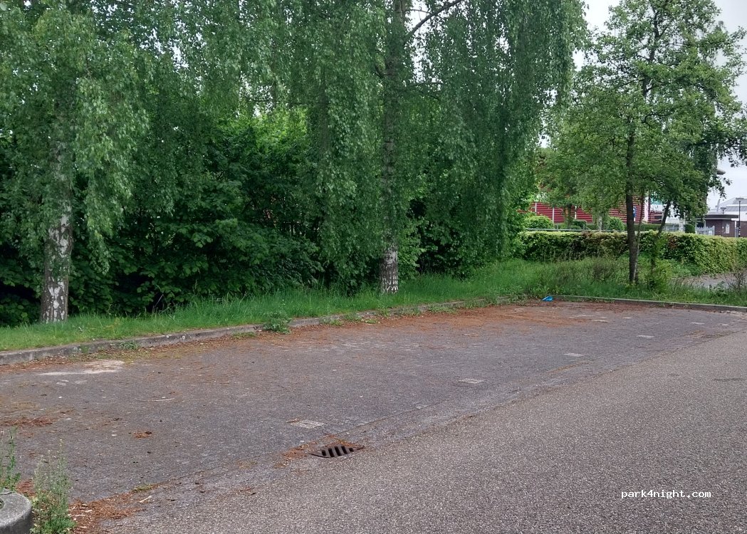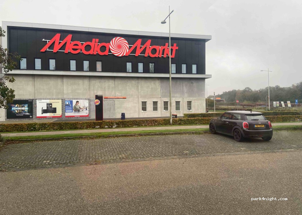Vermijden in weekenden, en bij sport evenementen.Een parkeerplaats tussen MediaMarkt en voetbalvelden. Genoeg ruimte voor grotere campers, inclusief. Iets lawaaierig tot middernacht, maar verder is het verscholen van de weg en geschikt om te overnachten. Gratis.