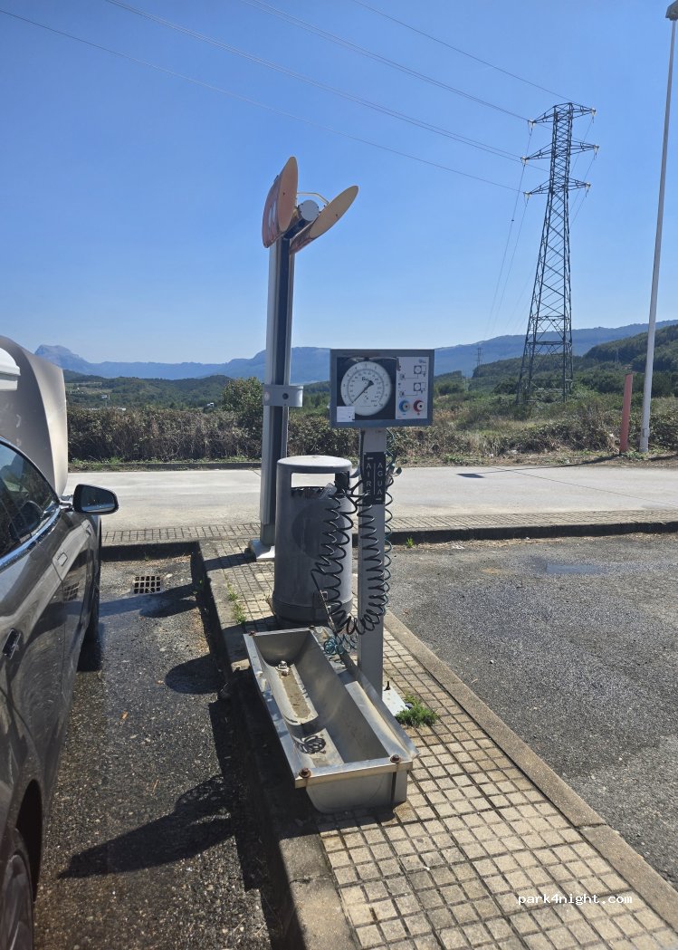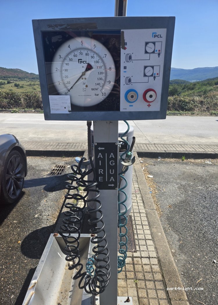Parking lot with availability of utility water and air for inflating tires free of charge at the Galp gas station. Rather quiet for a motorway service area. Can be suitable for spending a night as a stopover.