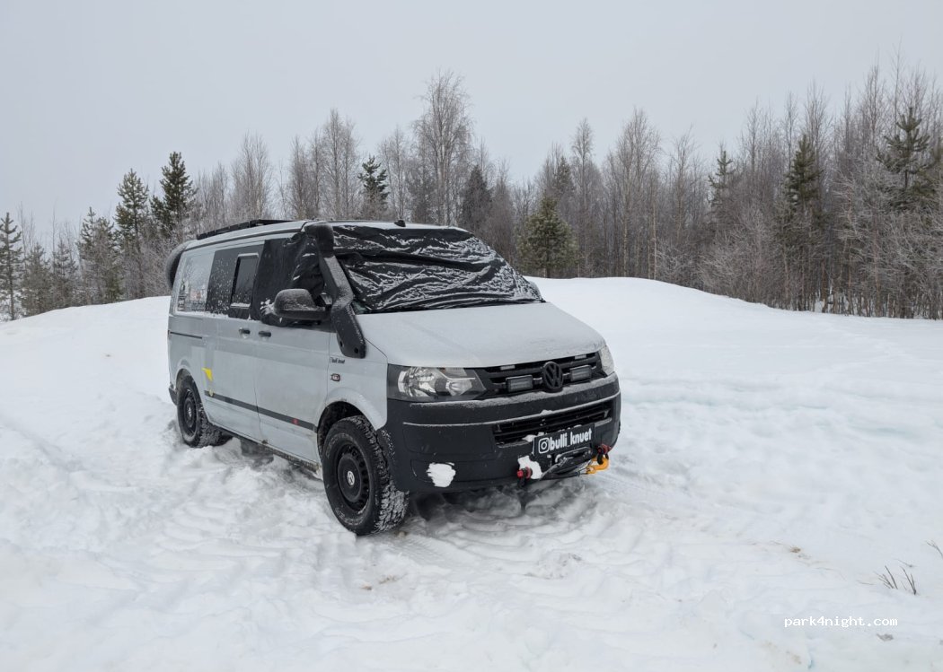 Parking space in the middle of nature. The path leads to a field, please park so that agricultural machinery can still pass. Absolute peace and quiet and a great view of the Northern Lights in winter. Increased ground clearance is an advantage. The path was cleared for us even in winter. No services, space for approx. 3 vehicles up to 6m.