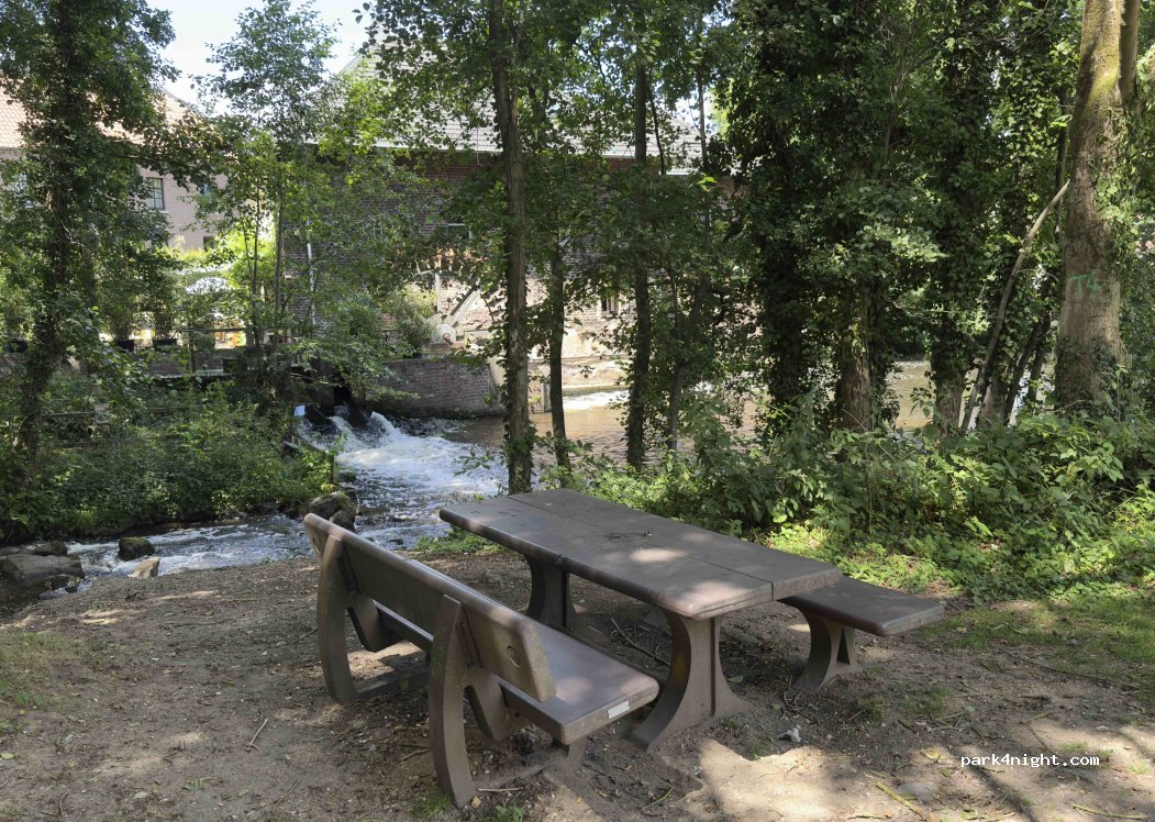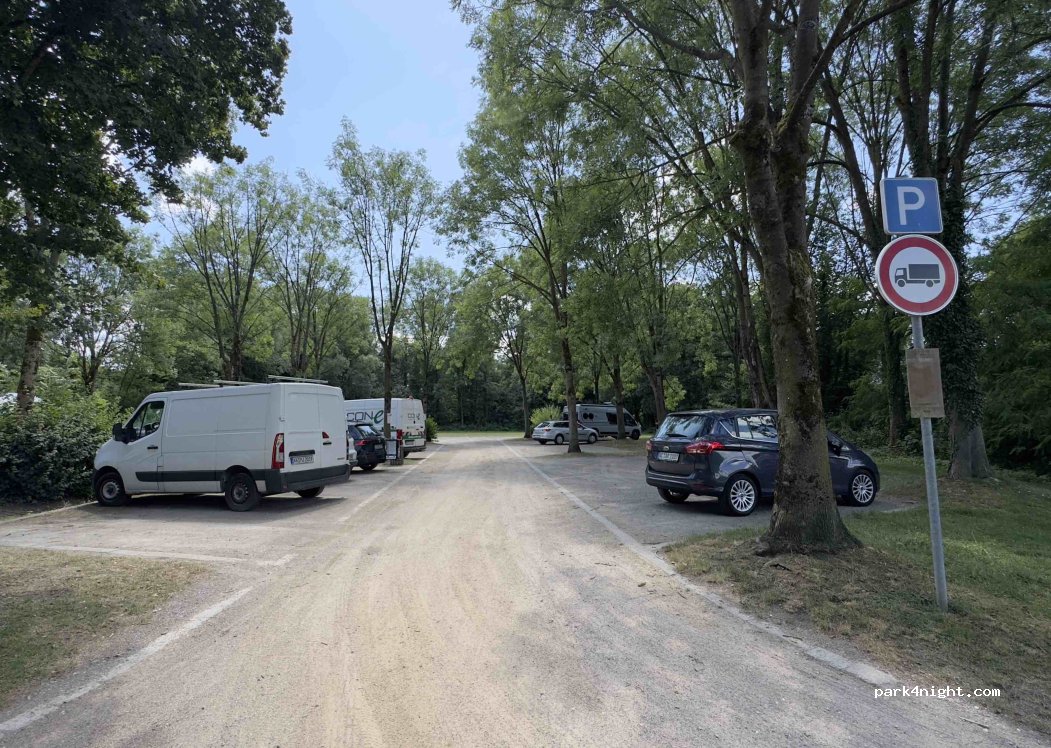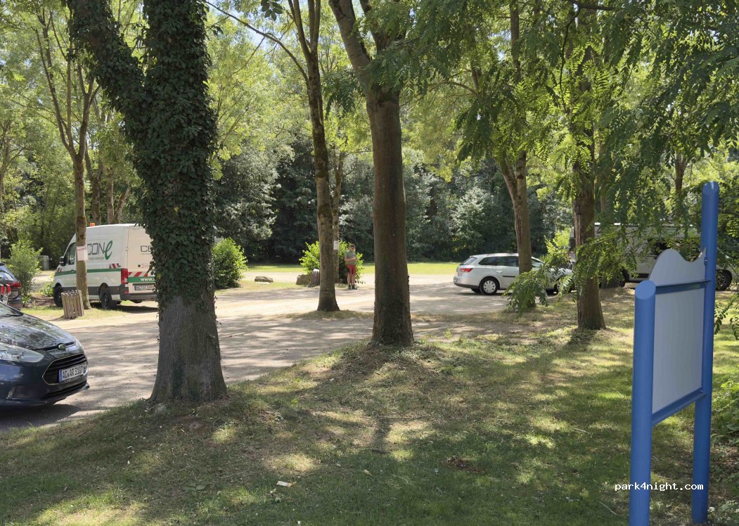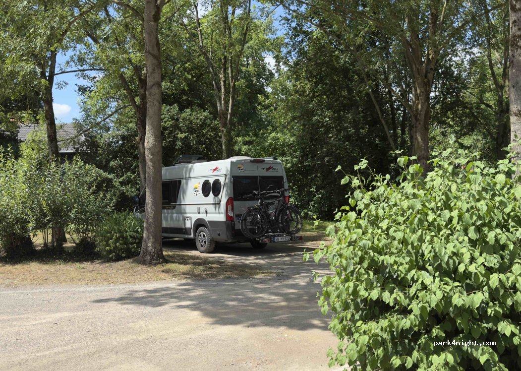 Netter, ebener Parkplatz an einem Bach mit einer Mühle, ihr gegenüberliegend eine Sitzgruppe. Wassertank mit 3 Hähnen und parkplatzübliche Mülleimer sind vorhanden. Ein paar Meter an der Straße ist ein Campingplatz. Vielleicht könnte man dort V & E nutzen. Wir haben hier nur für eine tolle Radtour durch das Naturschutzgebiet geparkt. Der Platz ist aber „notiert“ ;-)
