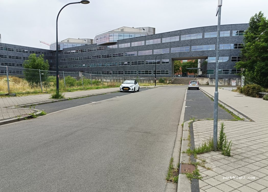 Parking strip in a quiet street, not far from the Bonnifanten Museum. (Cheaper than on Avenue Ceramique, old town within walking distance.)