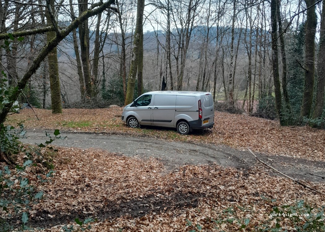 Nice tucked away area beside a quiet lane in woodland, near a tiny village.