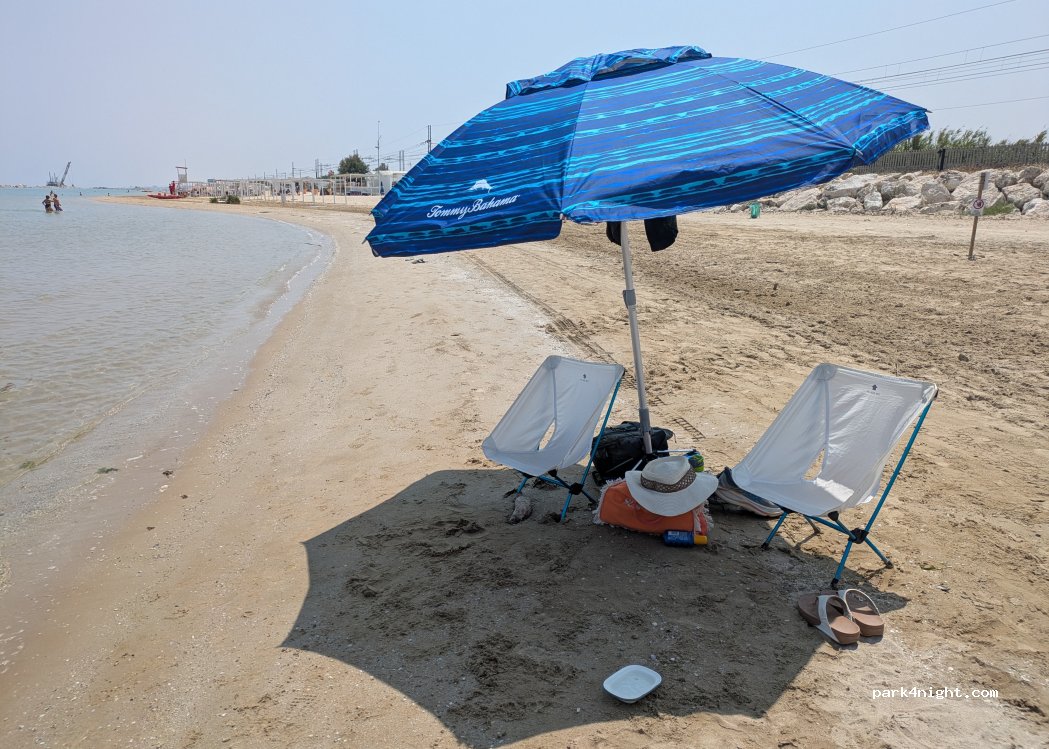 Se cercate tranquillità e relax senza troppi fronzoli questa tappa è l'ideale. C'è tutto il necessario: scarico wc, acque grigie e carico (rubinetti separati). I proprietari molto amichevoli e disponibili. Spiaggia pulita con acqua cristallina raggiungibile comodamente con sottopassaggio a 50m, cani ammessi. il treno non ci ha disturbato durante le 2 notti. Prezzo competitivo