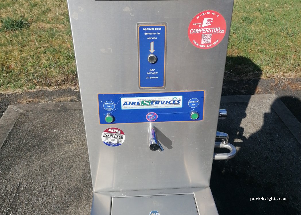 Très bien. Très calme. 11€ pour l'eau et l'électricité, vidange K7 et plein d'eau. Le centre commercial Intermarche n'est pas très loin. C'est parfait ! Merci à la municipalité d'avoir créé cet espace.
