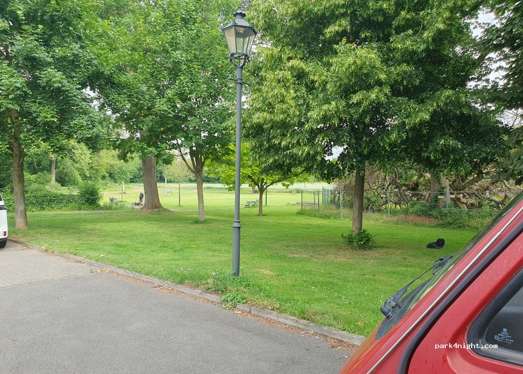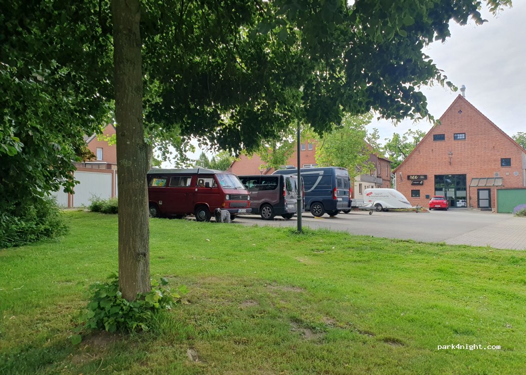 Large, quiet parking lot, located by a field. Close to the town center, bakery, Edeka, restaurants. You can hear the highway. Excellent for one night.