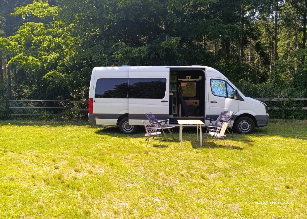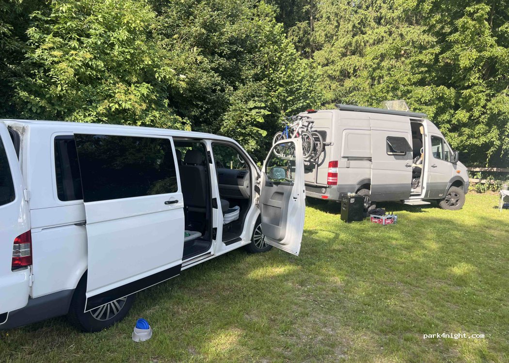 Wir bieten euch einen ruhigen Stellplatz direkt am Wald auf unserem Grundstück. Strom und Wasser sind vorhanden.