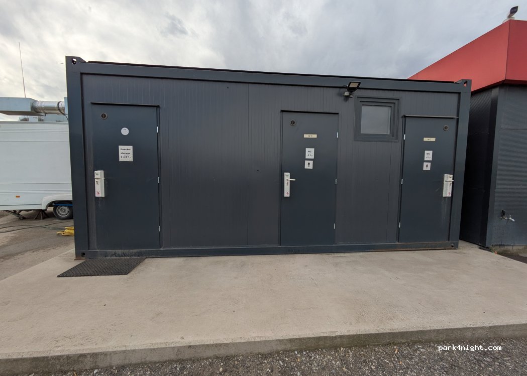 Dusche ein absoluter No-Brainer für Camper. Erst das Geld einschmeißen, dann geht die Tür auf und das Wasser läuft. Entweder 1€ für 6 min oder 2€ für 12 min. Innen alles sauber und vernünftig, guter Wasserdruck und wirklich warmes Wasser! Gerade im Winter echt ganz schön.