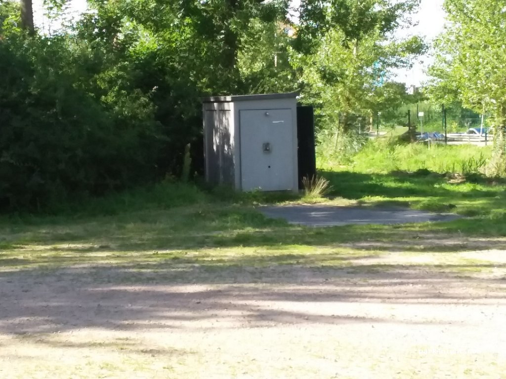 Parkeerplaats bij strandje en bos. 1 buitendouche. 2 wc's. Watertappunt aanwezig. - Geen 's nachts parkeren -