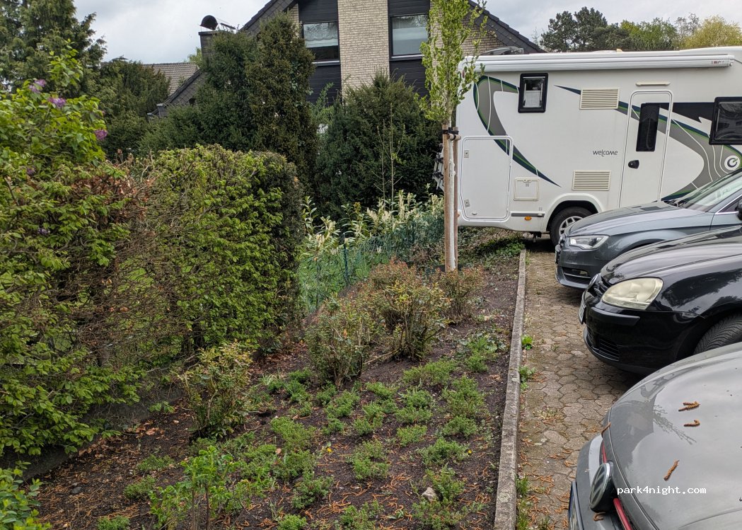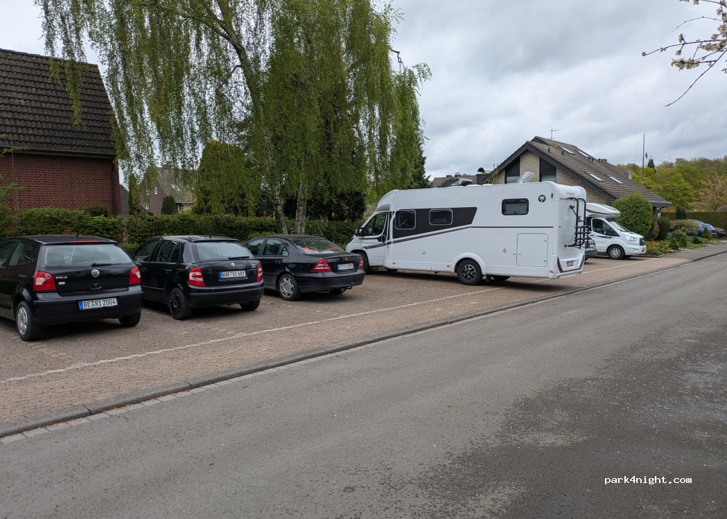 Parkplatz in einem Wohngebiete. ruhige Lage in der Nähe eines großen Parks. geeignet für Wohnmobile bis 7m mit Parken über einer kleinen Böschung.