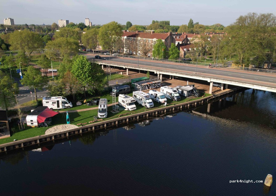 Topcamping! Stadscampings zijn vaak veredelde parkeerterreinen. Overboord heeft sfeer, uitzicht over het water en ook een fantastische borrelplek. Ja de plekken zijn klein maar het is ook een stadscamping. En zo dicht bij het centrum is (600 m naar randje centrum).